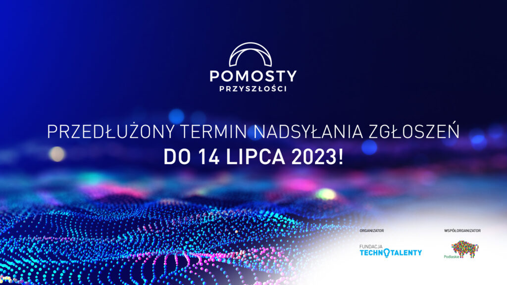 „W związku z licznymi prośbami zespołów naukowych oraz przedsiębiorców planujących udział w konkursie „Pomosty Przyszłości” przedłużamy termin nadsyłania zgłoszeń do 14 lipca 2023r. Zaznaczamy, że jest to termin ostateczny.”- Tomasz Stypułkowski, wiceprezes Fundacji Technotalenty.